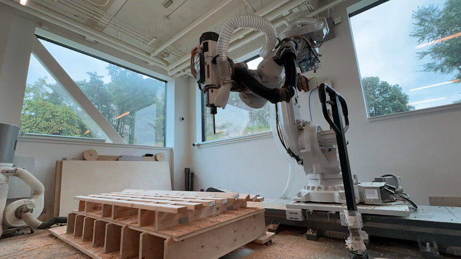 6-axis robotic arm milling 2 modules of dimensional lumber for polylith