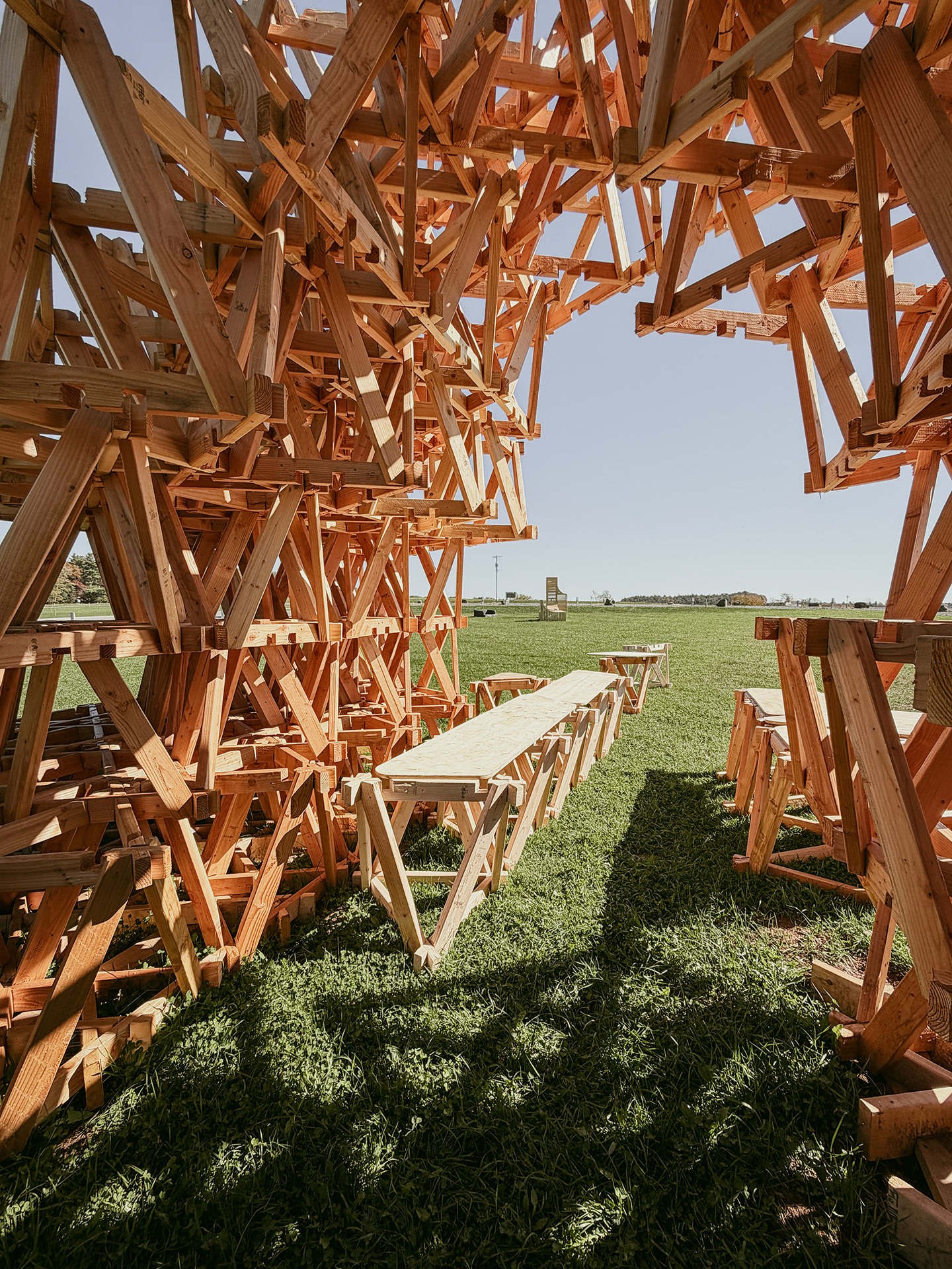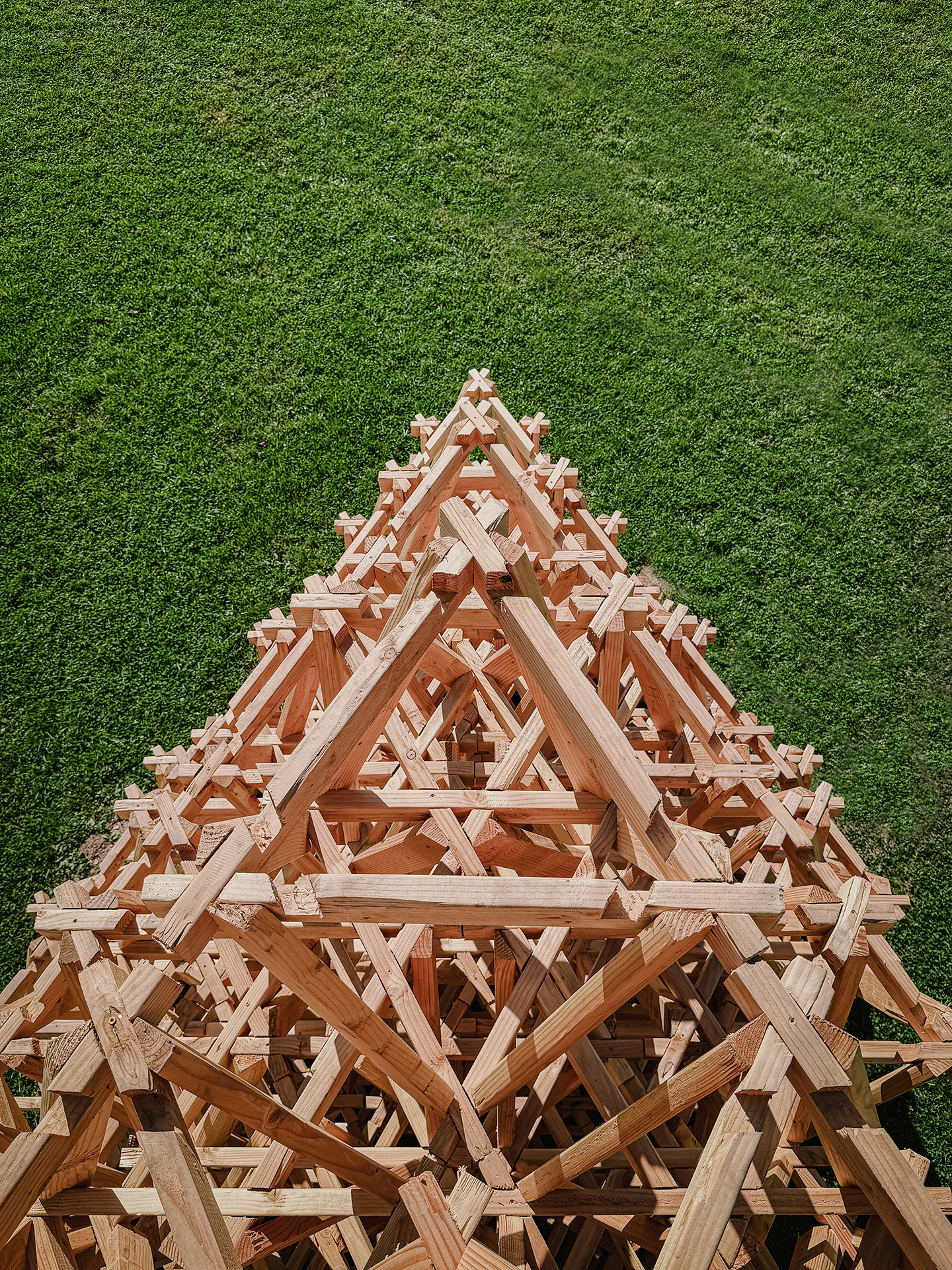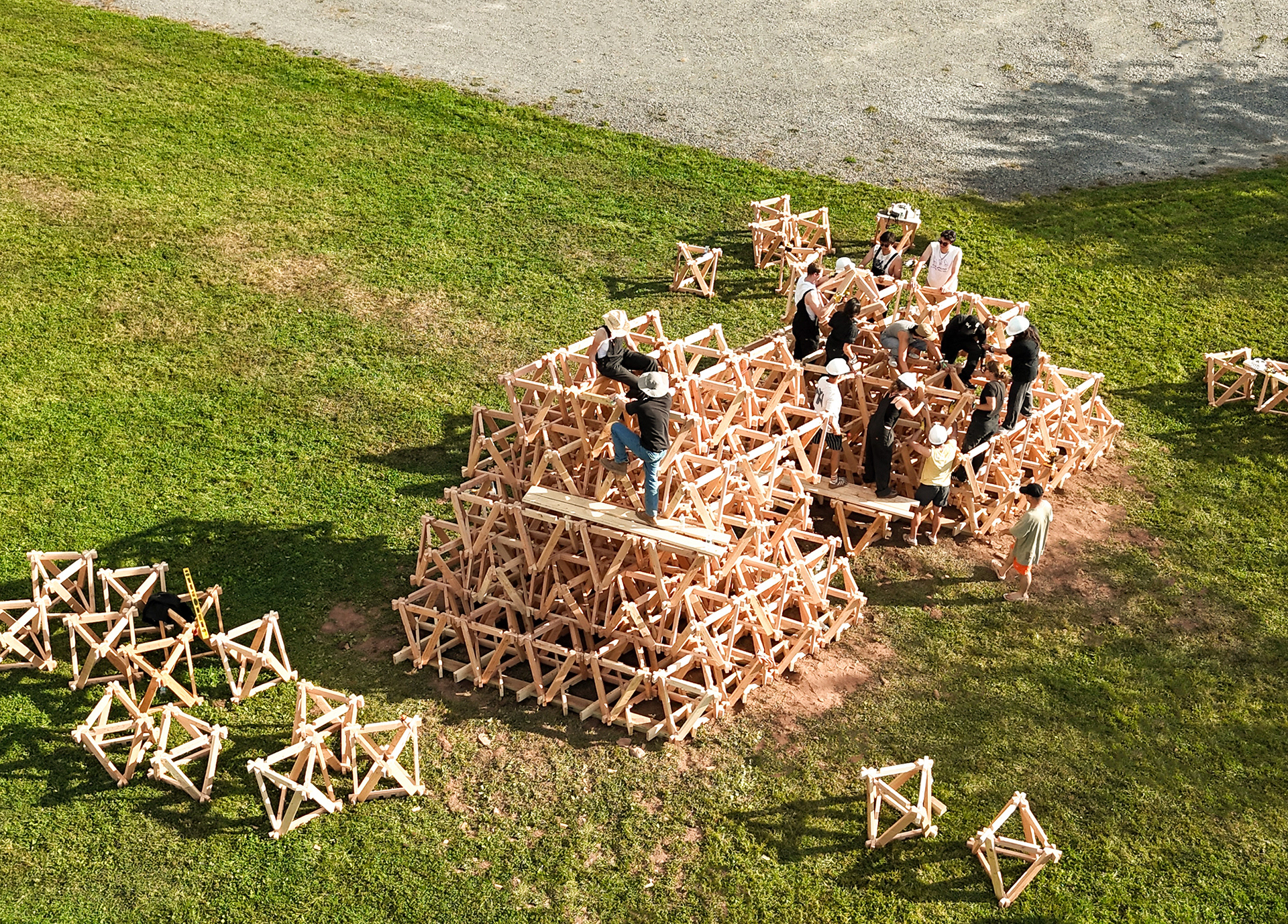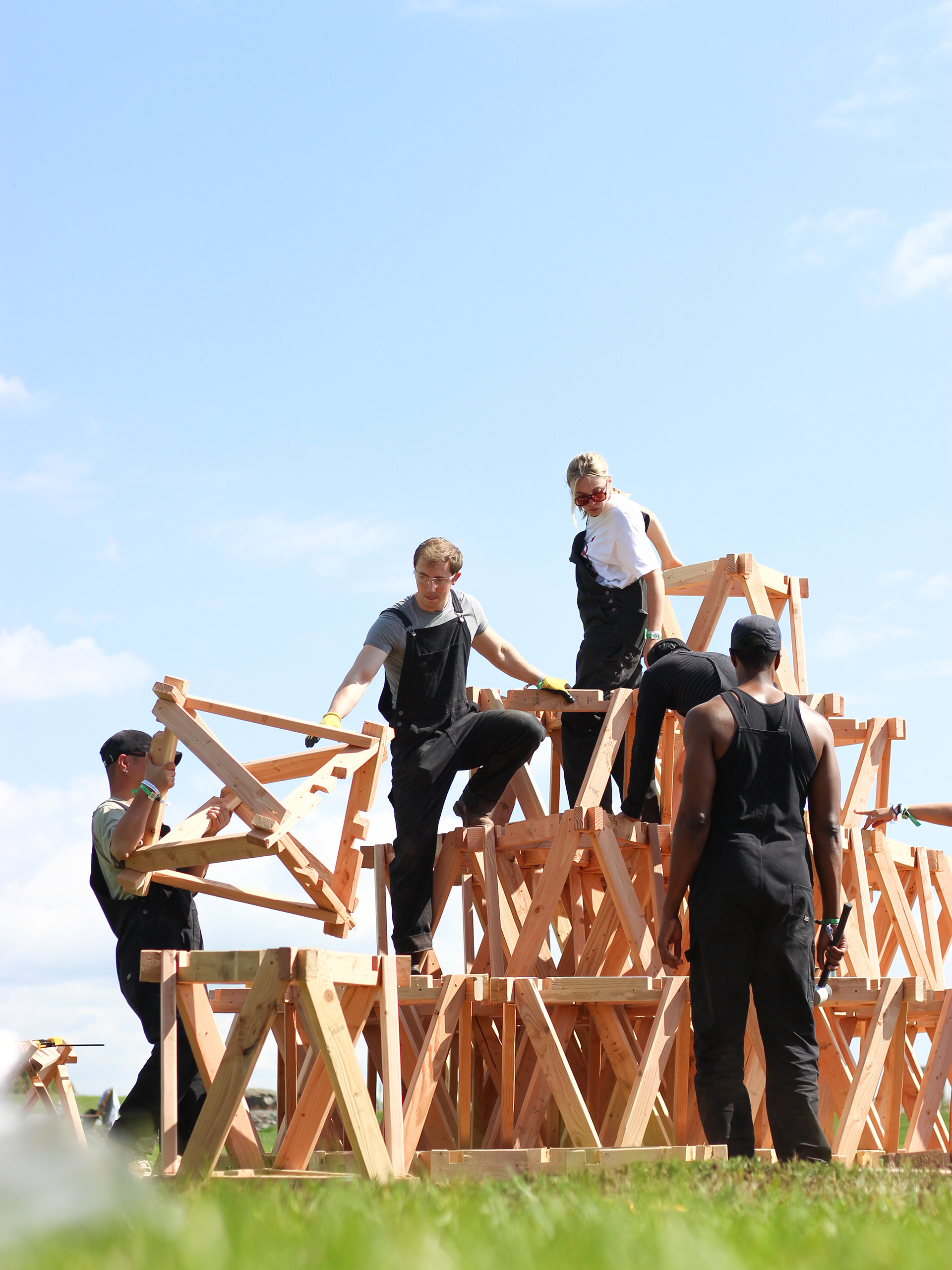 Polylith is a pavilion designed for BuildFest 2: Peace Rises. Centering construction labor as a collective act, it commemorates the powerful yet ephemeral experience of building together—becoming a monument that transcends its physical form. Conceived as an evolving process rather than a static object, the pavilion prioritizes shared authorship over formal resolution through its modular design.