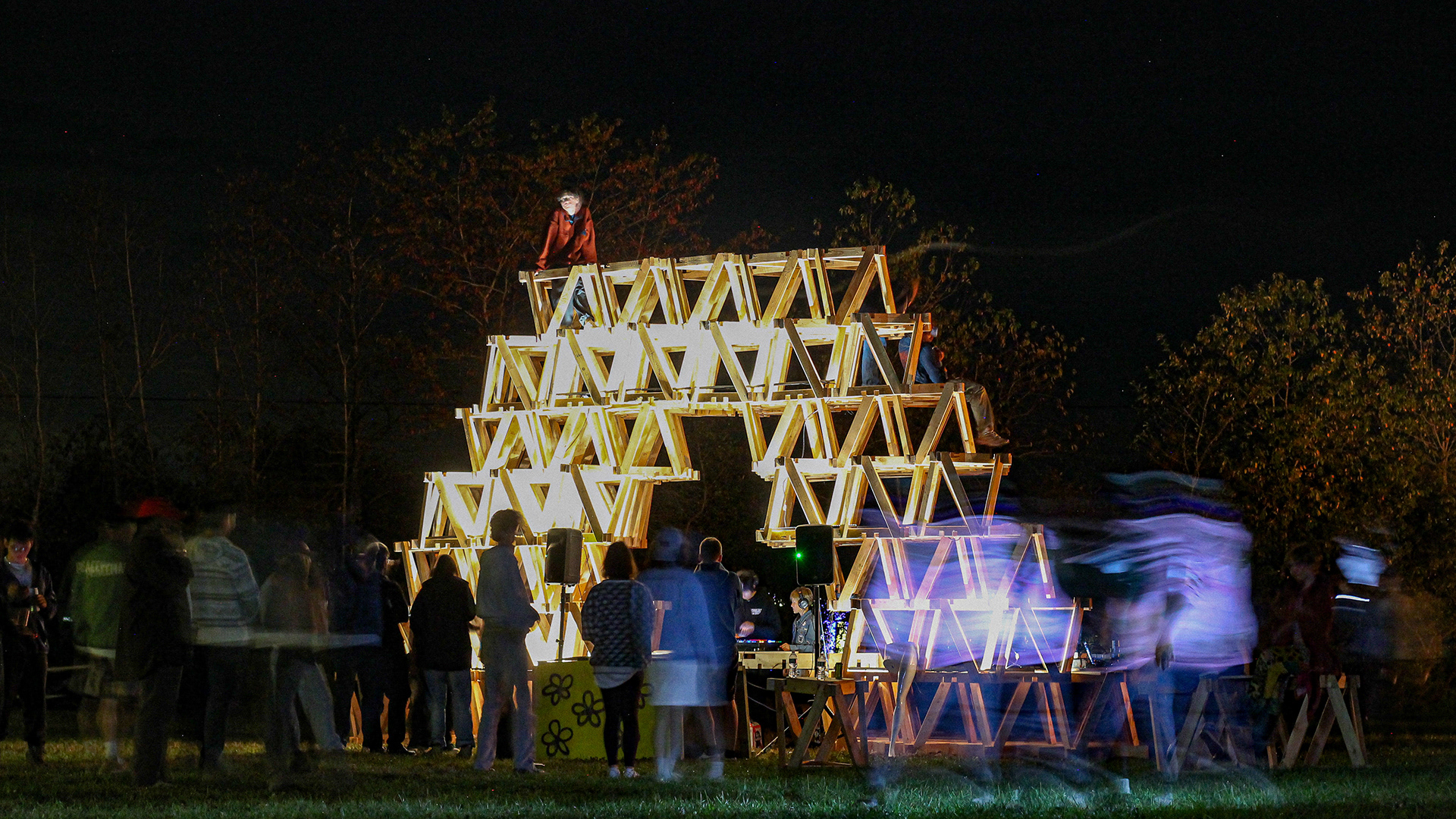 night perspective of Polylith while Sean Choi is mixing | Yuji Kitamura